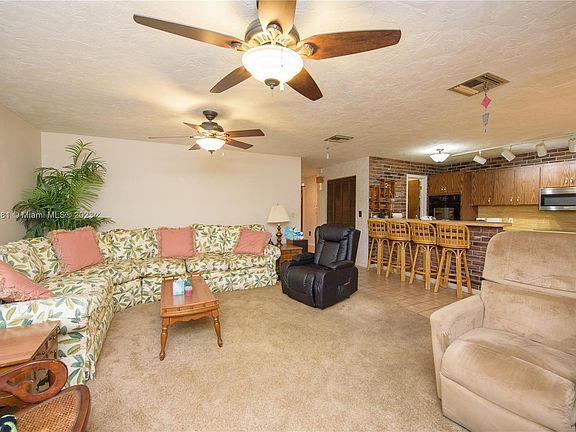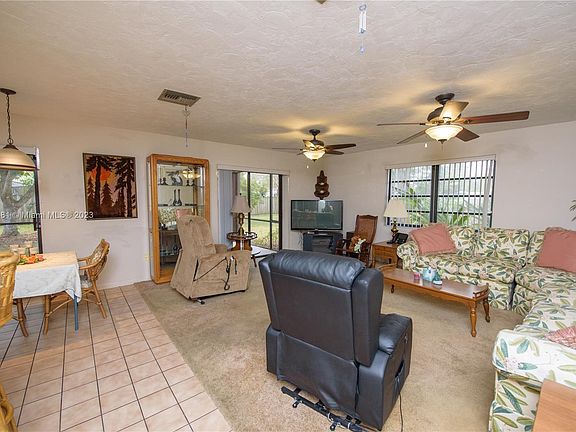 This home has 2 bedrooms and 2 bathrooms and it sits on a 17,892 SQFT lot. This home features a screened in front porch as well as a large covered screened in patio off the back of the house. There is a circular driveway and a 2 car garage. This home has a great room, great for entertaining and spending time with loved ones. The kitchen is very spacious and has a large walk-in pantry as well as a double sink. The great room and the kitchen both have sliding glass doors that lead out to the back patio. The back yard is fenced with a double gate. There is starfruit, mango, loquat, sapodilla, and oak trees. Also, there is an irrigation system with a pump.
