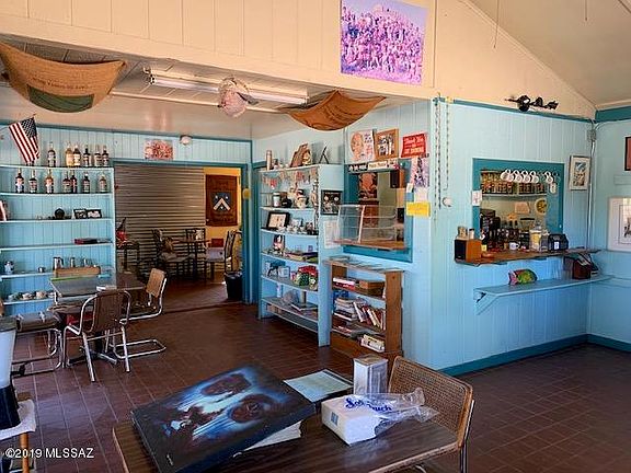 Talk about a opportunity and Priced to sell. This was formerly the Gadsden Coffee Company. This property has 3 buildings with the Business all with one Price. The coffee shop has all the necessities to start up again and be a thriving business in Arivaca !! The home needs lots of TLC , but talk about a view to the west Mountains and solitude. This even has a 968 sq. foot Casita with a 560 Sq. foot 2 car garage. The Coffee shop has approximately 928 sq. foot. There is also a 160 sq. foot shop that can be used for meetings. There are endless possibilities here for a Business location with your home just a few steps down the hill, yet have all the privacy you would need. Also included in this is the 2.48 acres that has a cell tower on it. This generates $850.00 monthly income.