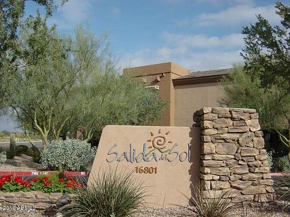 Desirable, ground floor end unit at Salida Del Sol. Gorgeous McDowell mtn views from this private 2 bdrm, 1.5 bath, North Scottsdale location. Nestled between DC Ranch and McDowell Mtn Ranch, this home is perfect for first time buyers, vacation home and down-sizing buyers. Lock and leave, no maintenance convenience for anyone. Covered patio, kitchen and Great Room all have fantastic mountain views. A lush wash runs along the eastern edge of the property allowing for privacy from your end unit condo with no steps. Ceramic tile foyer leads to both bedrooms and the tiled half bathroom and tiled master bathroom. The master bath has double sinks and a remodeled white tile shower surround. Laminate flooring in the great room and tiled kitchen. Appliances included. Excellent value & location!