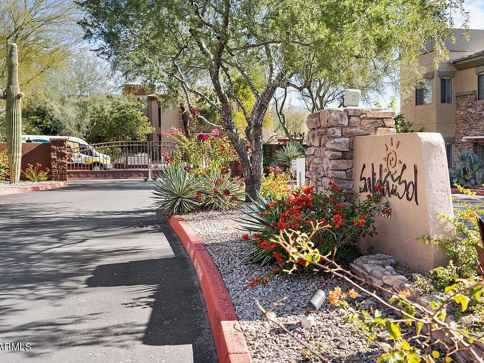 Don't Miss this Rare 2 Bedroom Ground Floor Opportunity in the Gated Community of Salida Del Sol. Two Bedroom Two Bath 1298 sq ft floor plan. Not a den but a bedroom with closet, window and private double door entry. Spacious Full Guest Bathroom with tub. Kitchen features stainless steel appliances and granite counter tops. Located in a private setting with no condos or homes behind. Private patio has entry from the living room and the primary bedroom. Enjoy the McDowell Mountain Views from your living room and kitchen. Ground level patio features a private storage room. Community Pool also features barbeque grills. Enjoy the hiking trails, restaurants, shopping & walk to WestWorld Upcoming Events such as the Annual Barrett Jackson Car Show, Concerts, Arabian Horse Show & Bike Week.
