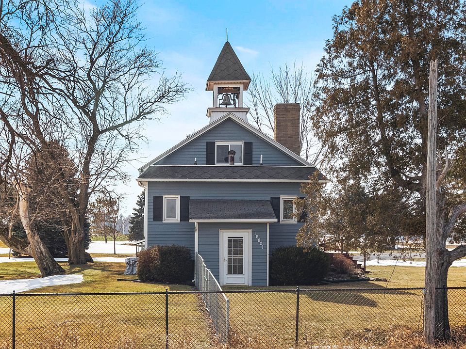 Come and take a look at this beauty. Once a one room school house, this 2 bedroom, 2 bath home is situated on just over 1.5 acres of land, and it still has the school house bell! Eat in kitchen with gorgeous farm house sink and plenty of cabinets is the perfect place to start your mornings. During the warmer months, head out to the deck and enjoy summer evenings with family and friends. Then make your way up the beautiful wrought iron spiral staircase to the 2nd bedroom and loft area! Perfect space for an office, kids play area, or reading nook. This home also has new flooring, counters, and sinks. Come take a look and see all that this home has to offer.