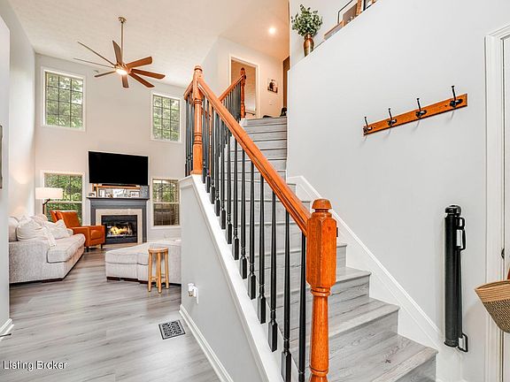 Welcome to your dream home, where modern luxury meets custom charm! From the rustic details of the front porch to the designer finishes throughout, every inch of this 3-bedroom, 2.5-bathroom home has been transformed for ultimate comfort and style. With an attached two-car garage and a finished walkout basement leading to a tree-lined, fully fenced backyard, this property is move-in ready. The main level boasts soaring two-story ceilings in the great room, beautifully framed by large windows and a cozy fireplace that provides a picturesque view of the surrounding trees. The open-concept floor plan flows seamlessly into a fully remodeled kitchen featuring shaker cabinets, quartz countertops, a tiled backsplash, stainless steel appliances, and matte black hardware. Passing through to the kitchen, you'll find a bright breakfast nook, while a spacious dining room with enough room for a farmhouse table offers an inviting space for gatherings. A conveniently located powder room completes the main level.