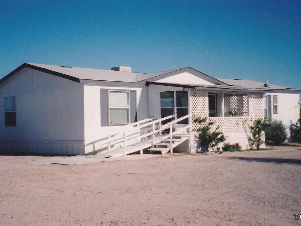 1680 sq. ft. with 3 bedrooms, den, 2 baths. Property is over 1 acre and sits on Natural desert with many possibilities. Walk into Living room and formal dining room. Large kitchen with plenty of counter space, and cabinets. Split bedroom plan, Large Master bedroom with big closet, and den (or you can use it as an office) is off the master bedroom, plus 2 other bedrooms and bath on other side. Nice front porch and deck in the back of the house. 2 carport spaces and shed included.