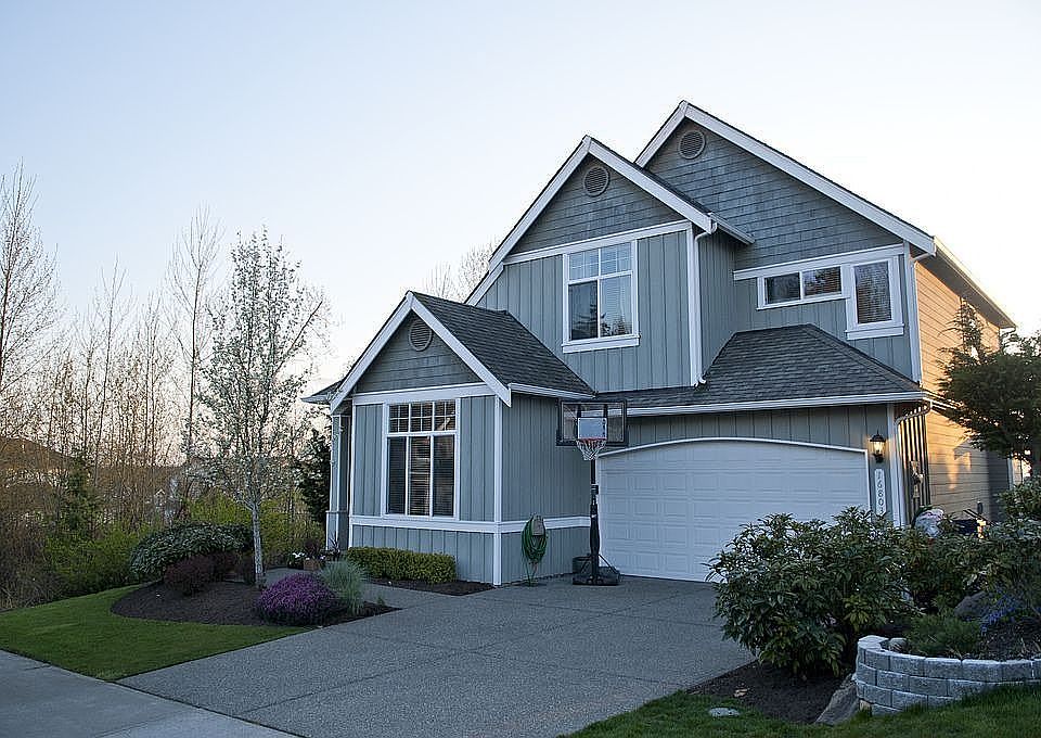 Views of Downtown Seattle & The Olympic Mountains with Spectacular sunsets! Spacious & sunny great room living steps out to huge custom-built deck overlooking low-maintenance gardens-perfect for entertaining, BBQ's or private relaxation while taking in the view! Master suite retreat w generous walk-in closet + delightful soaking tub w separate shower. Shaker style kitchen cabinets, all stainless steel appliances, granite countertops, including large island overlooking the "great room" featuring lots of natural light thru over-sized windows + cozy gas fireplace. Welcome home to the Woodside Community with many amenities including parks, ball field, quick walk to miles of trails, plus easy access to WA-167, SeaTac Airport, shopping & more!