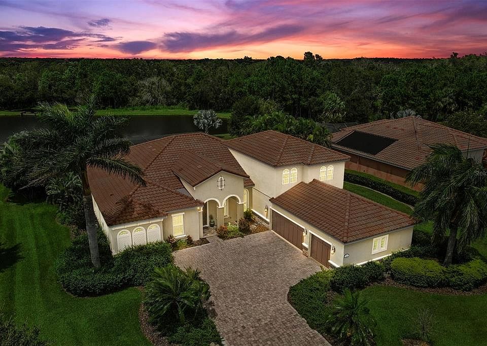 From the pages of a magazine comes this extraordinary home in the sought after Rye Wilderness Estates. This fabulous home is better than a model, with unrivaled attention to details and unparalleled finishes, a lavish outdoor area with summer kitchen, a magnificent salt water heated pool and spa, w/water features, beach shelf, travertine floors and pond with preserve views will surely take your breath away. Great curb appeal. The gourmet kitchen features a center island, backsplash, SS appliances with decorator vented hood to the outside, under counter lighting, walk-in pantry, and solid soft close wood cabinetry with pullouts. All this opens to Family room with large sliding doors. The masters suite is spacious with solid wood floors, his and hers walk in closets along with a luxurious bathroom that includes a separate shower, dual sinks and a garden tub to relax, with adjacent wood floor office. Up the stairs is a spacious bonus room that can be your fifth bedroom with its own bathroom or a perfect play room/TV room for the whole family to enjoy. The spacious laundry room has upgraded solid wood cabinetry. Jack and Jill with gorgeous bunk beds. Another bedroom with its own bathroom and walk in closet. In addition to all of this, this home boasts a side load 3 car garage. Plantation shutters and crown molding thru out the entire house adds elegance. Rye Wilderness is situated only approximately 10 minutes to the interstate and 30 minutes to world famous beaches, near top Manatee schools, close to St-Pete, Tampa and Sarasota. NO CDD's in this neighborhood. Fences allowed. Comes with one year AHS home warranty.