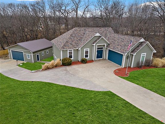 Meticulously maintained ranch home in Kearney Schools! Enjoy the countless features this one owner home has to offer. Situated to the back of the cul-de-sac, on an oversized treed lot. Large windows and towering ceilings on both the main level, and lower level walkout. Primary bedroom boasts vaulted ceilings, and a brand new bathroom en-suite renovation. The basement is truly a must see featuring a large open space, wet bar, and suspended 3rd lawn garage. Detached 30'x36' shop with finished concrete floors, electricity, water, car lift, and more. Enjoy living on the outskirts of town, while maintaining quick interstate access, local dining, & shopping. Less than 1 mile from Jesse James Park!