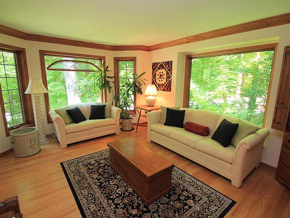 INVITING Trustway Great Home home with WONDERFUL LOCATION nestled on WOODED PRIVACY Lot, HUGE PICTURE Windows throughout-Bringing the outdoors in! OPEN FLOORPLAN w/ Hard Wood Floors, Crown Moldings, Ceramic Tile Floors, & Vaulted Ceilings! FABULOUS Kitchen w/ oak cabinetry, Silestone counters, snack bar & LARGE dinette overlooking SPECTACULAR Deck/Patio! MASTER SUITE w/ GRAND WIC, LUXURIOUS BATH w/ jetted tub Plus separate Shower, skylights & double vanity! FINISHED Lower level with SUPERB REC Room & STORAGE Space! Main level laundry, and GENEROUSLY SIZED Bedrooms, this is a MUST SEE!