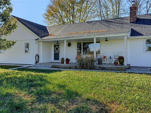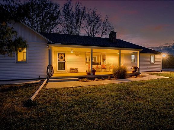 Stunning 10-acre ranch perfect for all your country dreams! This property includes a spacious 30x50 barn equipped with water, electricity, a chicken coop, and plenty of space for gardening, horses, and tractors. Inside the home, you'll find gleaming wood floors throughout and a kitchen designed to win your heart, complete with quartz countertops, an island, a pantry, and all kitchen appliances included. The home also features updated fixtures, new windows, a new septic system, and newer roof and vinyl siding. Relax in the large living room with a cozy wood-burning fireplace. Plus, there's a roomy unfinished full basement with abundant storage space. Sit back, relax and enjoy the beautiful sunsets off the back patio. Small acreages are hard to find. Don't let this one get away!