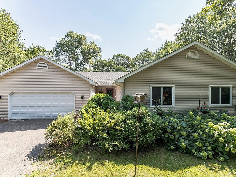 Wonderful rambler sitting on 2.5 wooded acres. New roof, new carpet, new paint, new counter top, new basement flooring, new water heater, and plenty of updates! 4 bedrooms, 2 full bathrooms, 2 stall extra deep garage, 4 season porch, and walkout basement. Plenty of storage! Above ground pool out back next to the deck and playground. Minutes from the Sherburne National Wildlife Refuge with biking and walking trails. Added parking pad on the side of the garage.