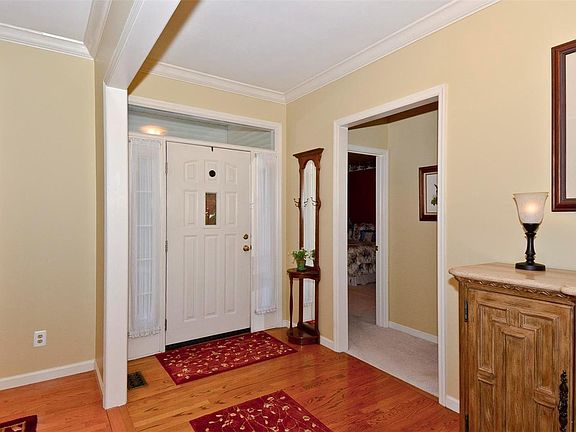 Charming ranch home in Woodcliffe Place which has a club house & pool. This well maintained ranch home has brick & vinyl exterior with enclosed soffits and cozy covered front porch. The entry way has wood flooring and welcomes you to the formal dining area which features a bay window and crown molding. The great room has soaring 10 ft ceiling & wall of windows that lets in the natural light. The kitchen area was update in 2007 with custom white cabinets with mill work, granite counters, center island, smooth top stove, decorative back splash & lighting. The sitting area has a see thru gas fireplace & opens to the breakfast room. The master suite is vaulted & has 2 large walk-in closets plus a luxury bathroom with 2 sinks, garden soak tub & separate shower. There are two additional bedrooms and a Jack-n-Jill bathroom. The lower level is a spacious open living space, with cedar closet & rough-in plumbing. Deck 2009 with retractable awning, irrigation sys, Roof 2006,HVAC 2007.