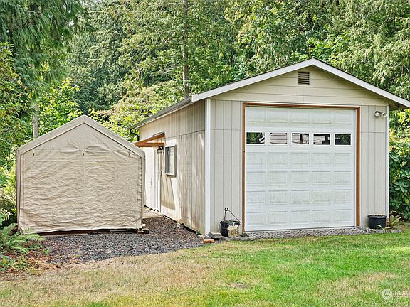 Price Improvement!! Just the mini-farm home you have been searching for! Situated on 2.1 acres, 3 bedrooms and 1 bath in the main house, 2 car detached garage with finished rooms and a 3/4 bath above - multigenerational living - check out the newly added pics of the unit!! A large newer RV garage, covered wood storage, 2 wells - and a newer septic. The home features a cute retro kitchen, wood floors, sliders out to a deck from the living room, and so much more! Tons of room for gardening, adventuring, and an excellent location. Right in the Scandia area, minutes from Poulsbo, and around the corner from Bangor base. This special home is ready for your touch! Can I mention all of the shop space, extra living space above the garage again?!