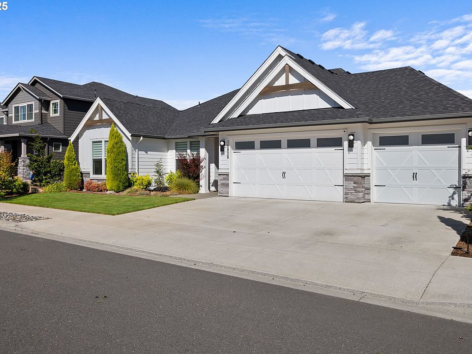 Beautiful 3-bedroom plus office/flex room, 2.5-bath Custom Kingston Home in the desirable Hockinson School District. This Energy Star–rated home blends modern luxury with energy efficiency and everyday comfort. The open-concept design features high ceilings, abundant natural light, and elegant finishes. The great room offers a cozy fireplace with custom built-ins, floating shelves, and designer lighting. The chef’s kitchen boasts Frigidaire Gallery appliances, double oven with convection, built-in microwave, large gas cooktop, quartz counters, cook’s island with seating, walk-in pantry, and soft-close cabinets with under-cabinet lighting. Energy-efficient features include a heat pump for heating and cooling, a heat recovery ventilation system, and enhanced HVAC performance. An upgraded low-voltage package provides ethernet in every room and whole-home Wi-Fi capability. The primary suite offers a spa-like walk-in shower, double vanity, and spacious walk-in closet. Secondary bedrooms feature custom closet built-ins, while bathrooms include under-cabinet lighting. Smart home upgrades include motorized window treatments, Ring security system, Nest thermostat, Schlage electronic locks, hardwired connectivity, and an interior/exterior sound system. The oversized 3-car tandem garage includes a mini-split heating/cooling system, epoxy floors, workshop space, and EV charging station. Outdoor living is made easy with a covered patio, gas hookup, ceiling fan, water feature, and mature landscaping. The HOA maintains front landscaping and provides winterization. Neighborhood amenities include a private gated park, playground, basketball courts, and pickleball. With thoughtful upgrades, smart features, and timeless craftsmanship, this home offers the perfect balance of efficiency, comfort, and style.
