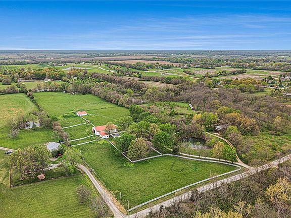 Beautiful, picturesque 14.5 acres located just south of Lee’s Summit in far north Cass County. White vinyl fencing across the front pasture and up the driveway welcome you home to your peaceful country home. Yet located on blacktop with easy access to 291 Hwy yet very private. Lovingly owned for the past 34 years and built out to a perfect horse farmette! Multiple outbuildings, 4 stall barn, run-in sheds, workshop and even a small indoor arena. Perfect to your horses or other small livestock. Fenced and cross fenced for pasture management and even a hay field at back of property.