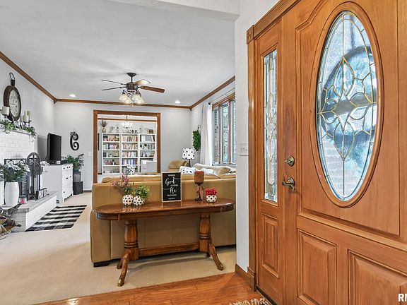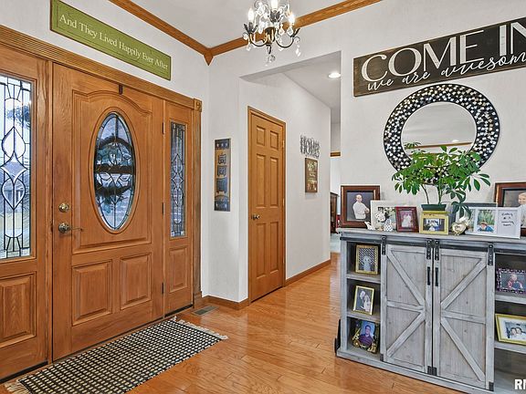 Check out this 4BR/2.5BA brick/siding home on the west side of Lincoln sitting on a FULL ACRE of land! This custom built home has many features that make it stand out. Be instantly welcomed to the foyer by 9ft ceilings thoughout the home. Living room has a gas fireplace. Raised formal dining is currently serving as a den/library. The circular floor plan also has a great eat-in kitchen/informal dining/family room. What a great space for family and entertaining! Kitchen is well equipped and updated with granite countertops, new fixtures and updated cabinets and newer appliances. There is a half bath/laundry area adjacent to the kitchen as you come in from the extra large two-car attached garage with attic space above. Master suite and a large bathroom with jetted tub and walk-in closet. The home also has three additional nice-sized bedrooms. The current owners have done many updates including running a natural gas line to the house and replacing the entire HVAC system. They also have recently upgraded the water heater, water softener system, RO water filter, air tank under house, multiple lighting and plumbing fixtures. They have also added to the landscaping of this massive lot with no back yard neighbors. This is peaceful country living with close to town amenities within the West Lincoln Broadwell school district. All kitchen appliances including washer/dryer stay.