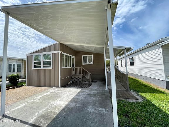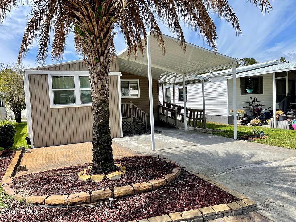 Rare find on PC Beach! Charming manufactured home in an over 55 community plus you own the land, too! The community has been well cared for with a well run Home Owner's Association and yes, great reserves. Community also boasts a heated pool, community room, grounds for gatherings and fire pit and a gated storage area for your boats and RV's!! This home has a great kitchen with appliances remaining, separate dining room and a florida room. Washer and dryer remains! Patio areas are located in the front and rear of your home. Great size storage shed off brick patio. Carport is here, too adjoining a ramp leading to side sliding glass door with screens. This is a must to come and see! Cash and conventional only.