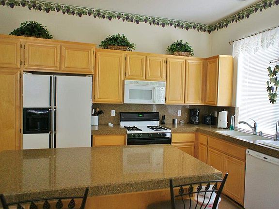 This 3 bedroom, 2 bath creme puff is located in a cul-de-sac with views of the wet lands. Brazilian Cherry wood floors are featured in the living room hall and all bedrooms. Tile flooring in kitchen/family room/dining area, both baths and laundry. Maple cabinets throughout. Kitchen has solid surface counter tops, gas range and oven, pantry and island with breakfast bar and it opens to family room/dining area with gas log fireplace and media niche. The master comes with a walk-in closet with mirrored doors,