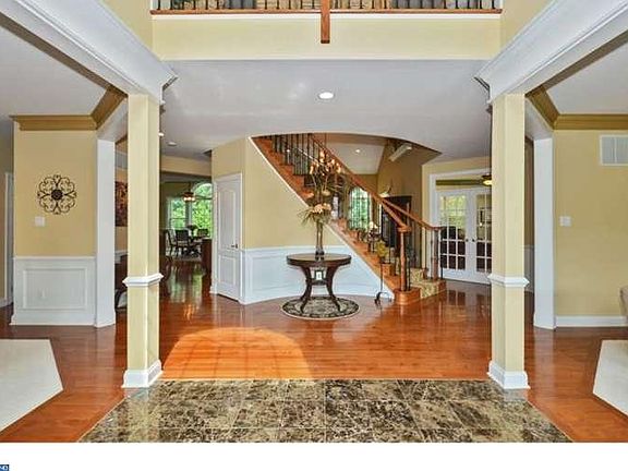 Colonial, 2-Story,Detached - YARDLEY, PA SPECTACULAR OPPORTUNITY AT THIS PRICE!! Executive style living in nderstated elegance best describes this home! Why wait for new when it is all finished and waiting for you here! Nestled in a completely private enclave of estate homes, tucked in between Makefield Highlands Golf Club on one side and protected woodlands on the other, this seven year young almost 4200 sq. ft. gently lived in beauty is presented for its' new owners! Beautiful volume ceilings and circular wood staircase greet you as you enter the entirely open floor plan of this Bradford Grand model home by Orleans! Gracious marble foyer gives way to wonderful honey cherry hardwoods in the living and dining rooms and beyond! From the foyer, enter through the 15 lite french doors to your sun splashed study! Two story expanded family room with stunning fieldstone fireplace still offers warmth that you get when you can enjoy the outdoors through floor to ceiling accent windows, while relaxing inside. The gourmet 'concept' kitchen offers more of those warm hardwoods with designer features such as raised panel wood cabinetry in cherry toffee finish, granite counters and breakfast bar, full wall of additional cabinetry including display buffet and storage and lovely tiled grand morning room area to overlook the complete privacy offered off of every window at the back of this home! As you ascend the gracious stair case, with wrought iron balusters, the view from every window is wonderful with bursting greenery from every angle! The main bedroom offers a sitting area with another beautiful fireplace, tray ceiling and custom tiled en suite bath with water closet and frameless shower and oiled rubbed fixtures. A surprise bonus space awaits for your use as another office or den. Additional bedrooms offer roomy accommodations and fourth bedroom has en suite bath, perfect for guests! No matter where you are, you are engulfed in privacy! Lush trees envelope the wonderful deck and spectacular patio areas of this home!