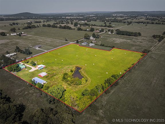 Situated on 9 acres on the outskirts of Westville, Oklahoma, this 3-bedroom, 2-bathroom brick home offers 1,675 square feet of comfortable living space with recent updates, including new flooring and a durable metal roof. The spacious kitchen features classic wood cabinetry, a subway tile backsplash, and ample counter space, while the inviting living room showcases a brick fireplace with built-in cabinetry and large windows for plenty of natural light. The fully fenced and cross-fenced pasture is ideal for livestock, complemented by a barn, corral, multiple storage sheds, and a detached metal garage. A large solid-front greenhouse provides the perfect space for year-round gardening. Additional features are a storm shelter and both well and rural water. This property offers the perfect balance of country charm and functionality, making it an excellent opportunity for those seeking a rural lifestyle with modern conveniences.