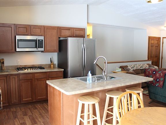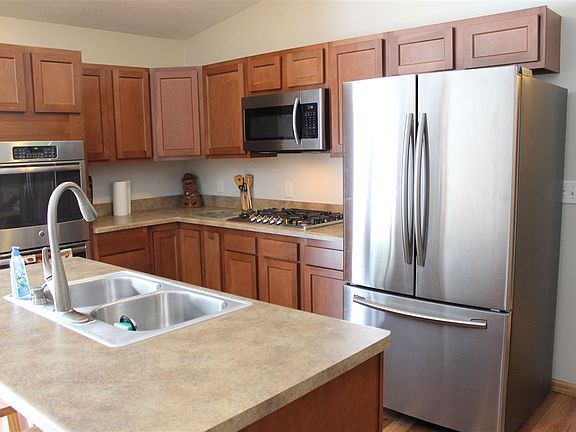 Updated open floor plan home featuring 3 nice sized bedrooms and a finished full basement. (One bedroom is in the basement) Basement has access from inside of the home as well as outside. Features of this beauty include, new paint, flooring, carpet and stainless steel appliances..including a double oven. There is room for a dishwasher next to the sink if desired. Outside has a back deck as well as a covered front porch on a large lot. The 24x24 garage has a drain and a work bench. Very nice location near the trails and the lake!