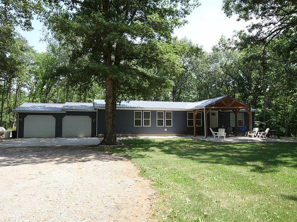 Peaceful, secluded, country setting location is right here! This beautiful well updated property comes with approx. 11 acres that has a stocked pond and plenty of timber for hunting. As you approach the property you will see a new metal roof, siding, a poured and covered patio that leads from the front of the house with an amazing view. With an oversized, attached 2 car garage, this near 2700 sq ft home has 3 bedrooms and 2 full bathrooms on the main level. Through the front door, you will notice newer carpet/vinyl flooring installed within the last 3 years. Kitchen/Dining combo comes with new countertops/backsplash (2022) and all new kitchen appliances that stay with the home! Master bathroom had a walk in shower installed (2021). Going into the walk-out basement there is a large family room with a wet bar that has many possibilities, and 2 additional rooms that could be used as bedrooms. Come see this country living property that would become a wonderful home! Additional Rooms: Mud Room