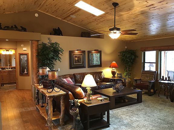 Incredible view cabin in gated section of Bison Ridge Community. Premium Ridge Lot with long range views and lots of privacy. Cabin has upgrades galore: Granite counter tops, Stainless steel appliances, Nearly 1,000 sq. ft. of maintenance free Trex decking, Gas or wood burning fireplace, Full field stone fireplace surround with juniper mantel, Custom decorated with two-tone paint throughout, Skylights in great room, Vaulted T&G ceilings, Granite vanities in all bathrooms, Upgraded lighting fixtures and ceiling fans, Built-in BBQ grill island, Large paver patio, Fully owned 500 gallon propane tank and much more. One of the most spectacular cabins in all of Bison Ridge. Must see to truly appreciate all this cabin has to offer. Call 602-809-9906 for showing.