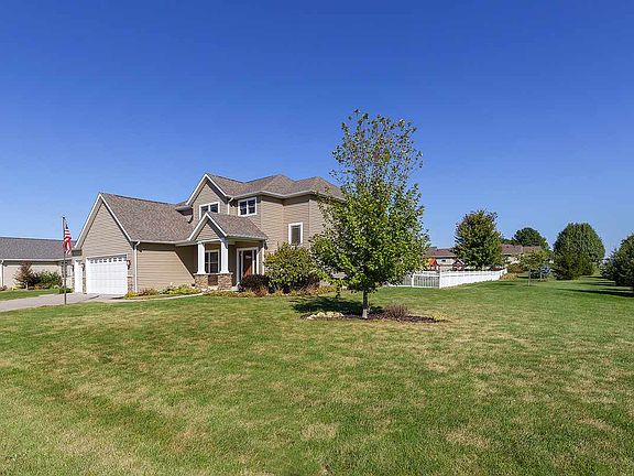 Welcoming and beautifully landscaped 5 BR home in North Scott School District. Beautiful floors throughout the Formal Dining Rm, Mudroom, & Kitchen. Spacious Kitchen with NEWER granite counters, SS Appls, wine chiller, walk-in pantry, built-in desk area & eat-in dining area. FABULOUS fully fenced backyard for entertaining with NEWLY refinished & expanded deck, pergola, play space, garden area, patio, & stone built-in gas grill. Upper level large Master Suite w/ Master BA w/ NEW granite vanity, soaker tub, & walk-in closet, 3 additional BRs, and Laundry Rm. Additional 730 sq. ft. of just finished area in basement w/ 5th BR, full Bath, Rec Rm, Office area & storage. 4 stall Garage & shed! Conveniently located next to golf course!