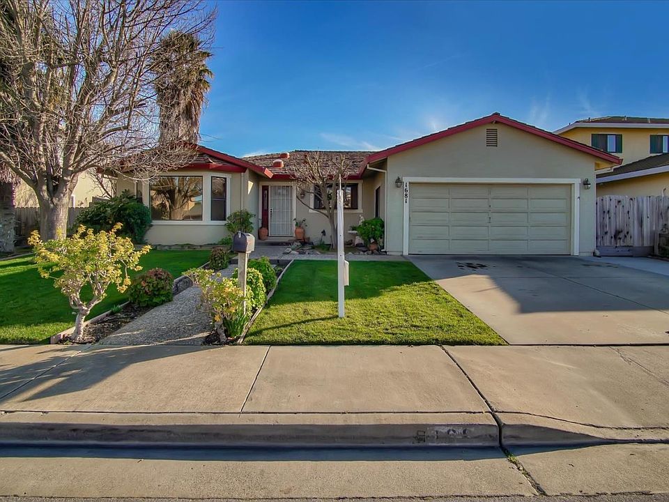 Charming 3-bedroom home in an ideal location with great curb appeal. You will love preparing meals in this kitchen with granite counters, a gas range and plenty of counter space. The living room features vaulted ceilings and a cozy wood-burning fireplace, perfect to relax or entertain! Looking for an office or playroom? A nice-sized bonus room can be anything you imagine (the current owners used it as a theatre room for many years). Better yet, this home is solar powered with panels that are 100% owned. The backyard is ready for BBQs and relaxation, with a large overhang for shade, your own putting green and hot tub gazebo. Seller just put in new carpets!