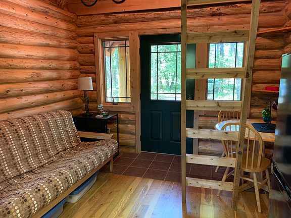 Why settle for camping when you can have all the amenities, and privacy too, in this turnkey full log cabin nestled in the woods? Located just outside of Indian River off a quiet paved street less than one mile from Burt Lake public access. Cabin has a well, septic and an Amish built 14x12 storage shed with loft for extra storage. Sleeps at least 4 as currently furnished. Nice neighborhood of quality homes. Cute fire ring area for those long summer evenings. Sit on the covered porch and enjoy the sound of rain pinging on the metal roof. Most furnishings included. Not eligible for conventional financing.