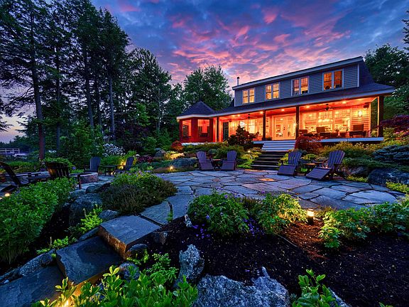 Welcome to Barkie Point, a crown jewel nestled on Highland Lake. This oasis envelops you with stunning 180-degree waterfront panoramas, sprawling over an exclusive 1.12 acres with an astonishing 350+ feet of pristine shoreline. The estate, crafted in 2014, showcases impeccable architectural landscaping. Graceful natural stonework is seamlessly interwoven with manicured gardens that encircle an elegant terrace, perfect for basking in the lakeside atmosphere. The alfresco experience is amplified by an exquisite exterior sound system featuring in-ground subwoofers, complementing the mesmerizing fire pit gatherings under the stars. The majestic main house, accentuated by an open concept, offers unrivaled vistas of the lake and terrace through ample windows. Warmth and sophistication emanate from the interiors, including a wood stove, two serene bedrooms on the upper level, and a tastefully finished lower level. Embrace the lake’s enchantment with your private deep-water dock, relish the sun-kissed sands of your personal beach, and luxuriate in the quaint gazebo offering an alluring screened-in sanctuary. Accommodate guests in style at the charming guesthouse, replete with two bedrooms, a bathroom, and arresting northern water views. A capacious 4-car garage, with additional parking, ensures convenience is at a premium. To top it off the home has a whole house generator, automatic irrigation system & security system. Highland Lake, a 697-acre expanse with depths reaching 30 feet