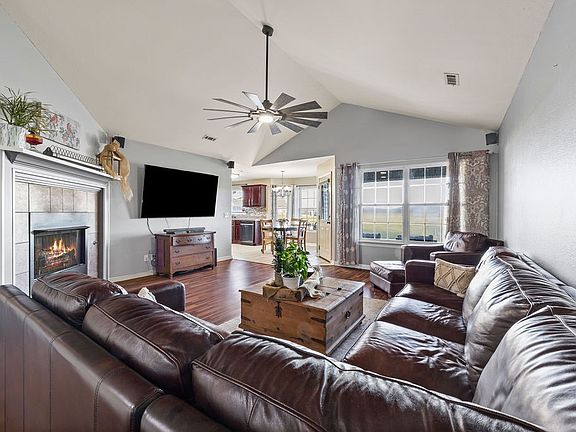NORTH PRAIRIE GROVE HOME WITH A VIEW. Charming all-brick home on a flat lot with beautiful views. New roof 2021. Appliance upgrades 2022. Gas range for the gourmet cook. Split floor plan and open concept in living area. His and her closets in primary. Additional vanity in primary bath. The heated garage is currently being used for band practice. Covered patio off the dining room. Views to the east for spectacular sunrises and moonrises. Side load garage. New 2023 12x16 Holdin storage building to convey.