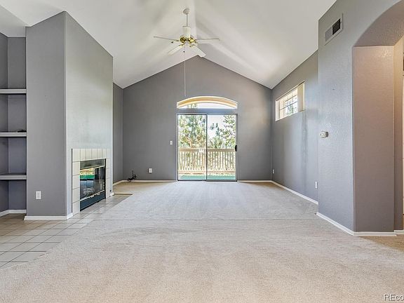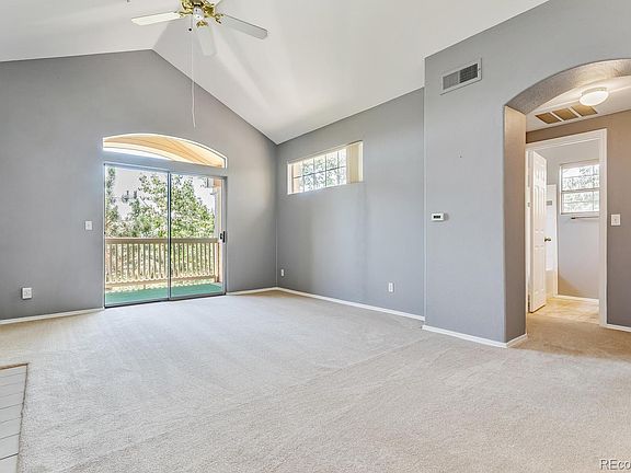 Super cute penthouse unit, 1 bed/1 bath in The Pinnacle at Highline! Brand new carpet! Garage #G17 & Parking Spot #P15 Neutral colors and HIGH VAULTED ceilings make this unit light and bright throughout! Spacious living room with charming gas fireplace and slider to balcony! Cozy kitchen has plentiful cabinets and countertops, and a tile floor for easy cleanup! All appliances are included! Large master bedroom with walk-in closet! Central A/C and ceiling fans, and great cross breezes keep this unit cool in the summertime! Covered balcony is surrounded by trees, providing lots of privacy and shade PLUS overlooks OPEN SPACE!! Detached 1 car garage plus 1 parking space! Less than a minute walk to the pool and clubhouse with fitness center, and a 5 minute walk to the the Highline Canal and Writers Vista Park! Quick drive to the Mineral light rail station, C470, Santa Fe, shopping and entertainment! This is the perfect unit for a first-time buyer, singles, couples, and retirees! HURRY!