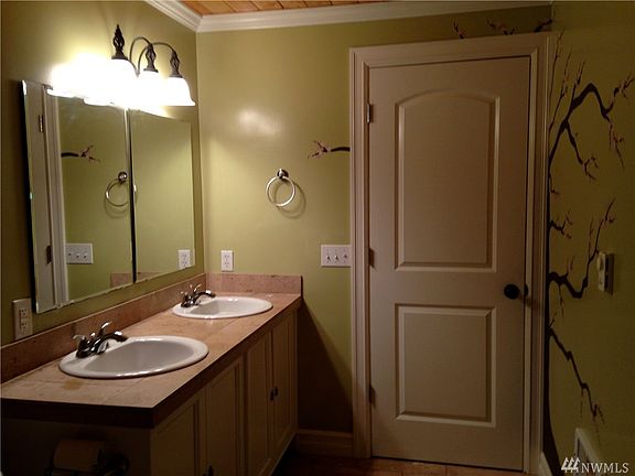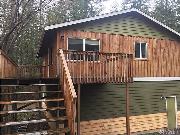 Unique Northwest Home located on .33 prvt acres/prvt dead end road.Main residence on upper floor surround by deck and breathtaking North Cascade views wraps this updated 2 bed/1 luxuriously bth home Homeowner is a master carpenter and updated entire residence with quality bath,kitchen,flooring and colors.First floor encompasses oversized finished garage.Outbuilding on property approx. 400 sq ft could have possibility of office/studio,space includes small kitchen,living and sauna (non-permitted).