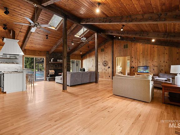 Send your offer! A unique rustic turn-key and premium quiet cul-de-sac corner lot ranch style single level property on 1.53 acres in North East Nampa, priced at value. Premium location close to everything. This home has a spacious interior and will give you enough to enjoy throughout all four seasons. Beautiful calming views from every window. Some of the many features include: newer mechanical items, energy efficient bedroom windows, wood burning fireplace(s), large seperate room with its own master suite and exterior access, large 40x30 shop with storage loft, ADU potential, RV parking, large heated pool, private park like yard surrounded by privacy trees, miles of community trail access, large BBQ area, pre-wired 50 amp space for hot tub, in-ground fire pit, sports courts, play house, and mature privacy trees.