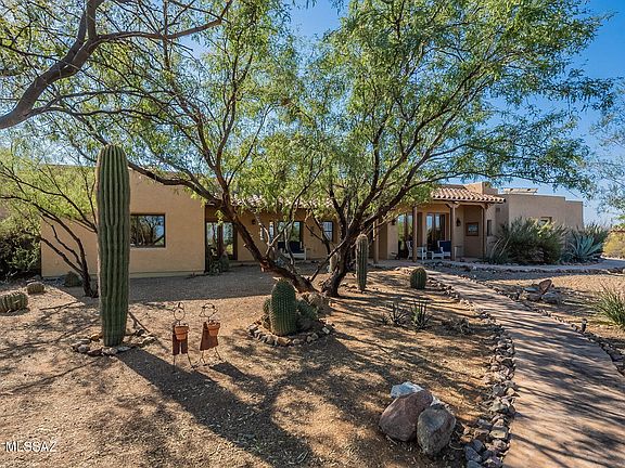 Nestled on over 4 acres of pristine desert, this stunning 3-bedroom, 3-bath home offers sweeping mountain views from nearly every room. The full casita provides flexible space for guests, a home office, or multi-generational living. The home's chef-inspired kitchen boasts custom cabinetry and a sleek black stainless fridge. Two spacious master suites, one featuring a luxurious walk-in closet, offer ultimate comfort. Outdoors, an RV pad and jacuzzi add even more convenience and relaxation options. The expanded backyard is an entertainer's dream, showcasing a PebbleTec pool. Enjoy nights under the stars on the private stargazing deck, and take advantage of owned solar panels, powering the entire property. This home is the perfect blend of luxury and sustainability--ready to welcome you!