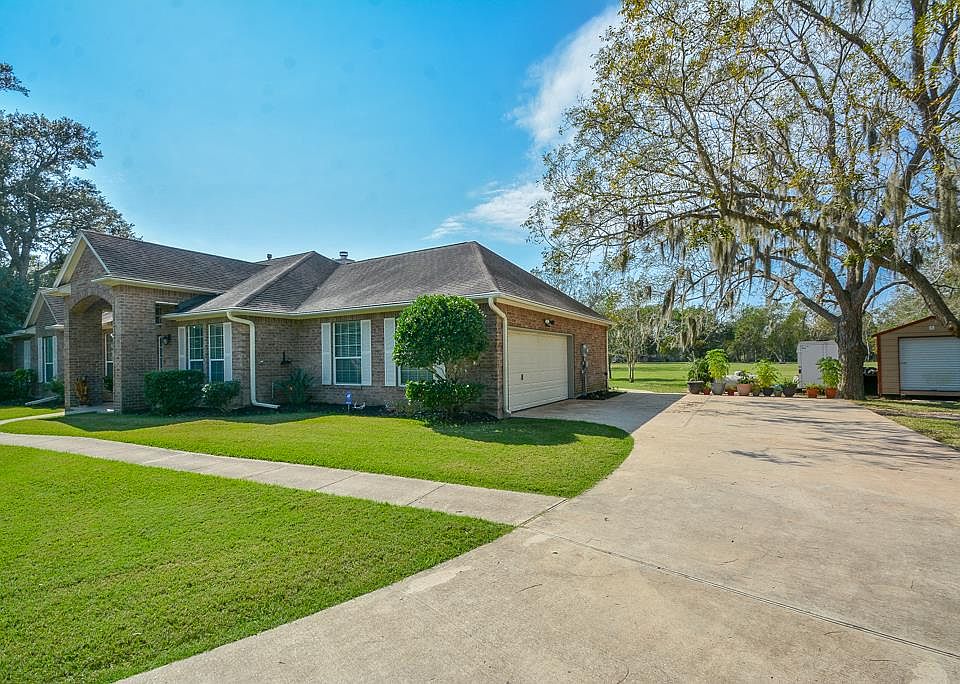Beautiful 1 story home on a 2+/- acres in Suncreek Ranch. 3bed/2bath w/ a flex room that could be used as a craft room, addtl storage, or whatever your heart desires. Master bathroom has recently been updated w/ a whirlpool tub and separate shower and home has recently been painted w/ designer paint. Enjoy quite Texas nights under the covered patio on this gorgeous lot with mature oak trees! Easy access to HWY 288 to get to Lake Jackson, Angleton, Med Center, etc. Do not let this one get away!