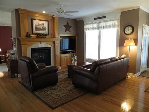 Incredibly spotless home! Gorgeous home w/ gleaming hardwoods in hearth room/kitchen/entryway*granite counters*hi-end stainless appliances*see-thru fireplace from hearth into great room*newer carpet up steps & in great room*New master bath w/ quartz counters*tile*double whirlpool tub*new paint*MASSIVE master closet*tall ceilings in all bedrooms*great closet space*finished lower level w/ built-in entertainment system, wet bar, & 1/2 bath*sprinkler system*fenced backyard w/ trees and patio!