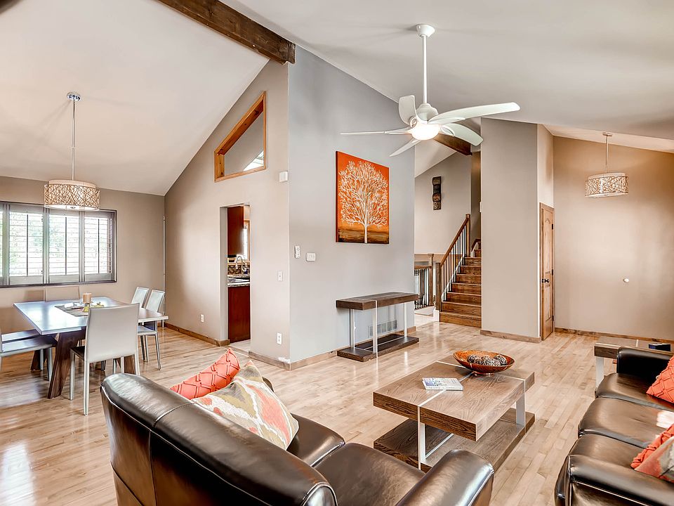 Practically new Piney Creek home features an open living room, formal dining room, newly refinished hardwood floors, eat-in kitchen with all new cabinets, slab granite countertops, subway backsplash and travertine flooring. Entire home has new doors/trim, hardwood stairs, iron balusters, carpet, flooring. Upgraded wood stove, beetle kill mantle and travertine stone surround in family room. Bathrooms completely updated. Finished basement. Newly covered patio perfect for entertaining.