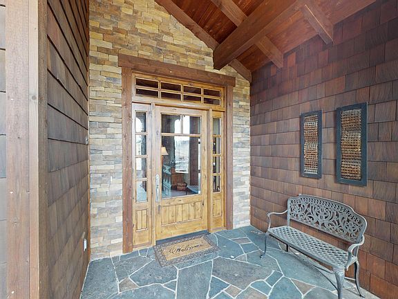 - Exterior features: Stone, Wood