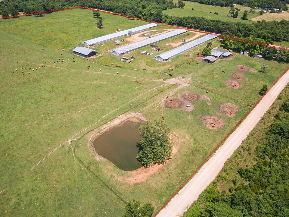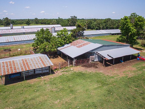 You can't find 80 acres tracts like this just anywhere. Two good ponds, well water, corrals, mostly open pasture in native grasses, cross fencing, county road access on two sides, and multiple out buildings. The chicken houses are still in operation but Simmons Foods will not give contract to a new owner. The home has had some good remodeling in recent years and the seller continues to improve it a little at a time. Under construction some unfinished rooms. Come see!