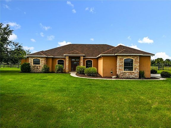 Wow! Here is your chance to own this big beautiful custom home on 11+ acres. You will love the tree lined drive as you pass one of four paddocks on the way to the house. This custom home is well thought out and well laid out . It has everything you want. All the rooms are large with high ceilings and plenty of light. You have an office, a media room, family room, formal living room and formal dining room, a huge master and 2 large bedrooms. Any cook will love the big kitchen with it's double ovens and oh so much space. Don't worry there is plenty of space in the lush green paddocks for all your animals and lots of off farm riding. Don't overlook the perfect location. It's just down the road from HITS and an easy scenic drive to Ocala and all it has to offer, Gainesville and UF or Dunnellon and the beautiful river.