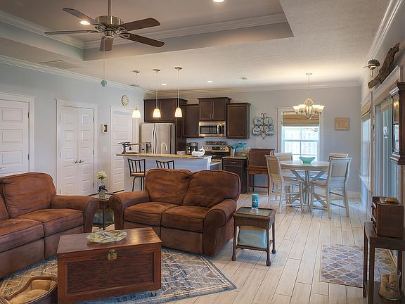 CURRENTLY UNDER CONTRACT, SELLER ACCEPTING BACKUP OFFERS subject to cancellation of existing contract. Come see this beautiful three-year old Coastal Craftsman style home with its expansive open concept living space, wall to wall gray faux plank ceramic tile and elegant crown molding. Interior: This home has 3 bedrooms and 2 1/2 bathrooms. All bedrooms include ceiling fans and are cable/power ready for wall mounted TVs. All bathrooms include granite countertops, framed mirrors and slow closing drawers. The roomy master bedroom features a coffered ceiling, recessed lighting, plenty of space for a king-sized bed with large side tables and can accommodate a large dresser or dual chests.