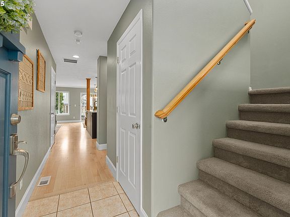 Welcome to this beautifully updated Arbor Ridge home, where modern upgrades and thoughtful design come together to create a perfect living space. The heart of this home is the fully renovated kitchen, completed in 2020 by Spruce Box Construction. It features stunning quartz countertops, a GE gas range with a stainless steel hood, a Bosch dishwasher, and a Whirlpool refrigerator. Custom dimmable lighting, including under-cabinet lighting, and built-in floating shelves in both the kitchen and dining room add a stylish touch.The open floor plan flows seamlessly into the main living area, where a gas fireplace and refinished original maple hardwood floors (2025) create a warm, inviting atmosphere. Upstairs, the primary suite boats a walk-in closet, remodeled bathroom featuring a quartz double vanity with soft-close cabinetry and new luxury vinyl plank flooring. Custom black-out blinds in all bedrooms offer privacy and comfort. Step outside to a beautifully designed outdoor space, complete with a slate-stamped concrete patio, custom stone landscaping, and shed. The roof and gutters were cleaned and treated in 2025. The home is located three blocks from a Trimet bus stop and offers easy access to the Tualatin Hills Park & Recreation District Rock Creek trail system.
