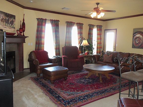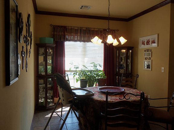ENJOY amazing sunset views from your covered porch. Home is located on a cul-de-sac and backs up to a green belt area. This well built Jeff Click home features a very spacious open kitchen with a large eating bar and ample cabinet space. Oversized office/den and formal dining room. Home also features wood blinds and crown molding. Recently added lights in closets, pantry and garage and extra can lights in living room. NEW FENCE JUST INSTALLED!