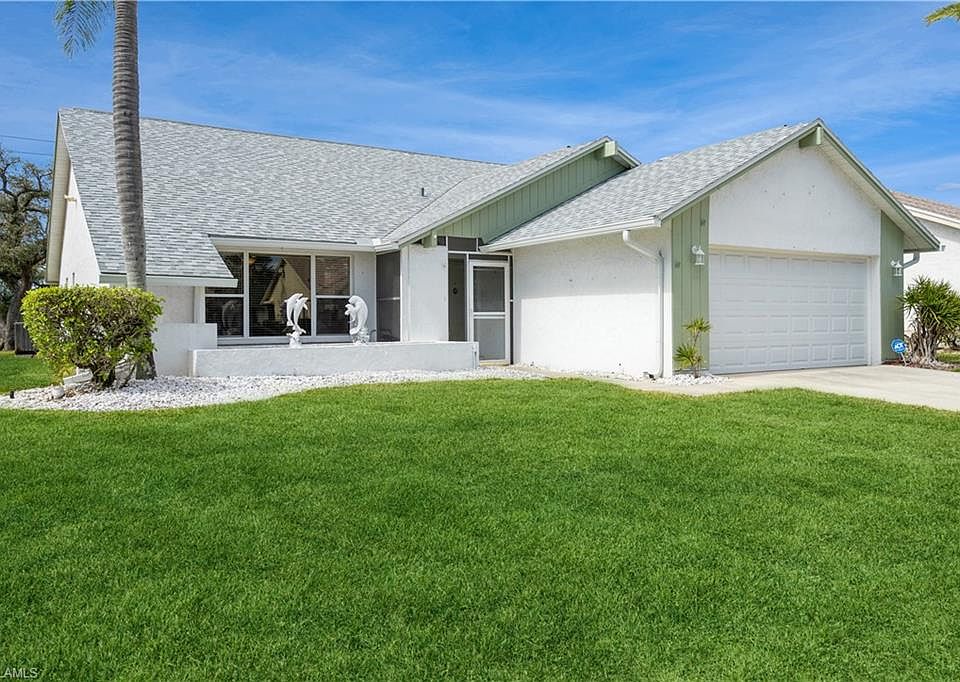 Totally updated lake view single family home in Cinnamon Cove. Nice layout as you walk into living room and dining room. The kitchen has been opened up, with quarts counter tops, soft close white cabinets, under mount lighting, new stainless steal appliances, and a pantry. Back of the home has a large open concept family room with vaulted ceilings, and adjoining sunroom over looking a large view of the lake. Both bathrooms have been remodeled with white cabinets, new lights, and walk-in showers. New flooring replaced throughout. Cinnamon Cove is an active community and is gated: pickleball, tennis, pool/hot tub, exercise room, bocce, shuffleboard, library, large clubhouse, and much more. Centrally located to Sanibel and Fort Myers Beach, shopping and restaurants.