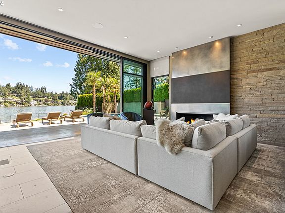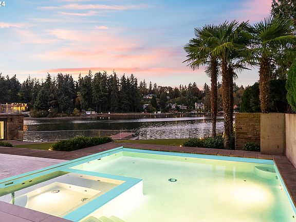 Lakefront luxury has never dazzled like this! Superbly designed custom crafted modern marvel ideally situated on Main Oswego Lake with private boathouse and dock, newly finished pool & spa with automated cover, and multiple entertaining terraces and decks. Dramatic walls of folding glass doors opening to the water, heated limestone floors, slab leathered quartzite counters, leather-wrapped walls, custom pendants and art glass finishes, this understated modern stunner is unforgettable in every way. Step from the foyer to the breathtaking great room that gazes over the sparkling lake and offers a sense of scale like no other with 12' ceilings, open dining room, elegant chef's kitchen with select new appliances plus nearby outdoor kitchen with built-in grill and fireplace for long evenings out by the water. Upstairs you'll find an incredible 840 sf primary sanctuary suite with private lake view deck, floor to ceiling windows, fireplace, remarkable his & her dressing rooms, and chic spa bathroom with heated limestone floors. Enjoy 3 additional sumptuous bedroom suites one that doubles as a bonus fitness room and 2 laundry rooms. The handsome main level study and upper floor 2nd office space provide many options for today's lifestyle, and the garages are beautifully equipped for the avid auto collector with wiring to accommodate auto lift for a total of 6 cars in the 2 garages. The estate is an architectural work of art all in itself and the perfect home for your fine art collection. Enjoy picturesque fully fenced grounds with custom lakeside fencing, turf lawn, and water sports from your private lakefront haven. Motor off across the lake to revel in the best of Lake Oswego's vibrant amenities, championship golf, dining, and shopping in this unmatched community. Oregon waterfront paradise awaits!