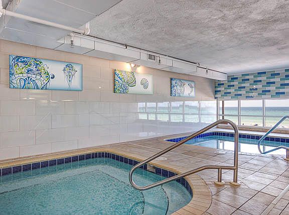 Very popular 2 bedroom 3 bath with bunks 1131 sq ft ''M'' plan units that is a fantastic rental as both bedrooms have their own bathroom; sleeps like a 3 bed room with bunkroom with attached bathroom. This mid-level unit boasts spectacular views of the Gulf through the floor to ceiling sliding glass doors in the open living floor plan, new LVP flooring throughout, new living room furnishings and fresh decor, and balcony furniture. Washer/Dryer and dishwasher in 2022.Tidewater Beach Resort is a premier property in Panama City Beach close to Pier Park featuring two outdoor lagoon style pools, heated indoor pool, movie theater and so much more!