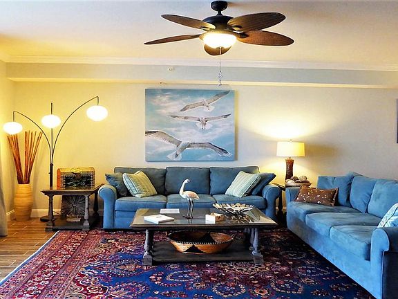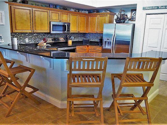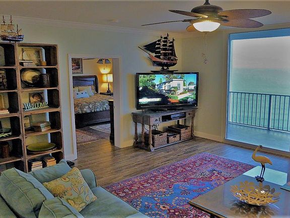 Don't miss this Gulf front oasis that has been renovated in a nautical theme with wood plank look tile, all new stainless appliances, tiled backsplash, two fireplaces, artwork, furnishings, and LG front loading W/D on pedestals. The 3/3 C floorplan boasts 1,865sf and comfortably accommodates a family of 8-10. Open concept plan with 9' ceilings, granite, breakfast bar, and crown molding is fully furnished and rental ready. Also included are two large storage cages in the hall...The Master features a King bed, 46-inch flat panel TV with DVD player; a cozy window nook overlooking the Gulf, and a slider to the Gulf front balcony. En suite bathroom with double sinks, granite, soaker tub facing an electric fireplace, a separate shower, and a huge walk-in closet...2nd Master with full en suite,