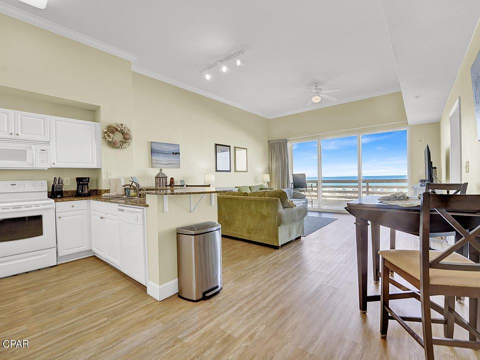 FIRST FLOOR! NO ELEVATORS! This beautiful, well maintained condo is perfect for your next investment or beach getaway! It also comes with a DEEDED STORAGE UNIT! This condo has 1 bedroom with a bunk room, and 2 bathrooms. This condo also has high making it feel very big! The kitchen has granite counter tops, white shaker style cabinets, and a breakfast bar big enough for 4-5. The unit has new LVP flooring throughout. The master bedroom is GULF FRONT! Walk out the balcony door and right down to the white sand! No waiting on elevators, no fighting through people to get to your unit! This unit is TURN KEY and ready for rentals! Tidewater is located on the Westend of Panama City Beach and close to all the new attractions. Dolly's Pirate Theater and Top Golf! Tidewater offers 3 pools, a fitness room, a theater and on site restaurant and tiki bar. All measurements are approx., and should be verified by buyer.