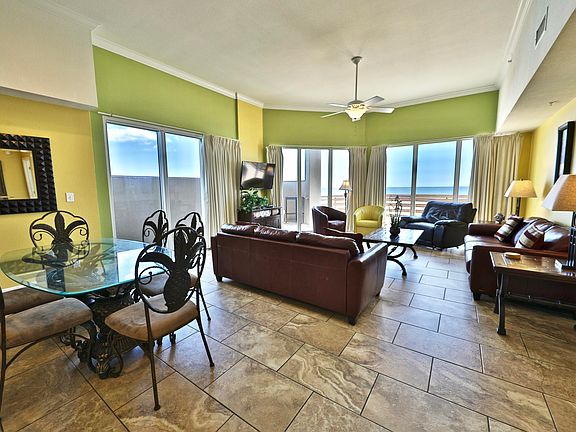 No Elevators! This Tidewater large ground floor 3 bedrooms 3 full baths condo is an end unit and is 1 of only 2 Tidewater condos with 12 ft ceilings, giving it a very large and spacious feel. It is great for a large family or 2 families or Groups sharing the Spacious condo. Your Beachside door opens directly to the boardwalk just steps from the east pool and the walkway to the beach. Your entry door is a few steps from the indoor pool. The unit's interior has tile flooring thruout, Italian leather furniture in the living room, 2 master ensuites with king beds and a 3rd bedroom with 2 queen bunks. Great Amenities - 3 pools, Movie Theater, Tiki Bar, Restaurant on first floor & 1st class gym. Located 1/3 mile from Pier Park - shopping center of PCB. 2019 gross income exceeded 47K.
