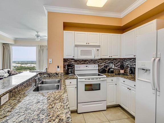 Upon entering this unique 1 bedroom, 1 bath with bunk area east end unit, you will immediately experience the amazing view of the Gulf of Mexico through the floor to ceiling windows. Unit 1918 is a warmly decorated unit that brings a feel of home as well as the beach, highlighted by ceramic tiled throughout the unit. The kitchen, featuring a glass tile backsplash, opens to the huge living area and comes complete with granite countertops and breakfast bar, dishwasher and garbage disposal. Small and Large outdoor storage closets also convey with the unit! Guests love Tidewater for its convenient location, close to Pier Park and minutes away from Northwest Florida Beaches airport as well as the many amenities for all ages! Movie night is a favorite with families in our 58-person stadium